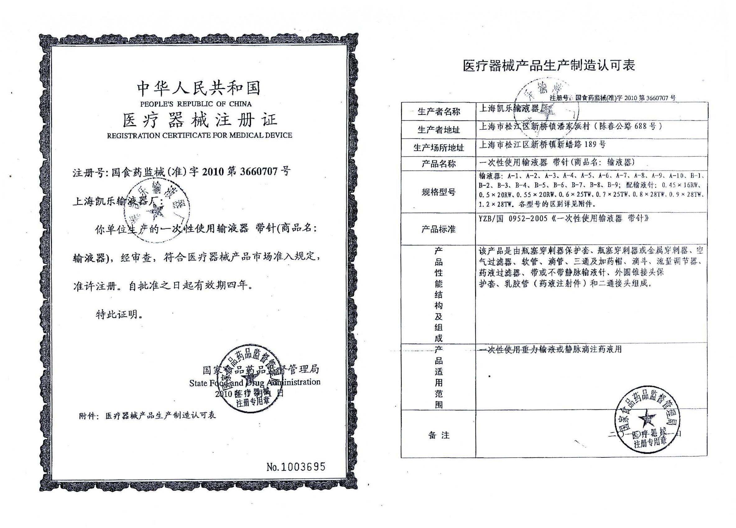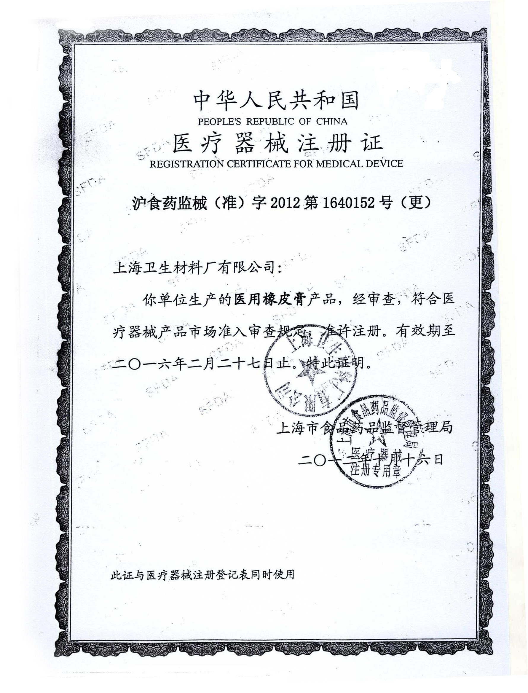 中华人民共和国医疗器械注册证样张